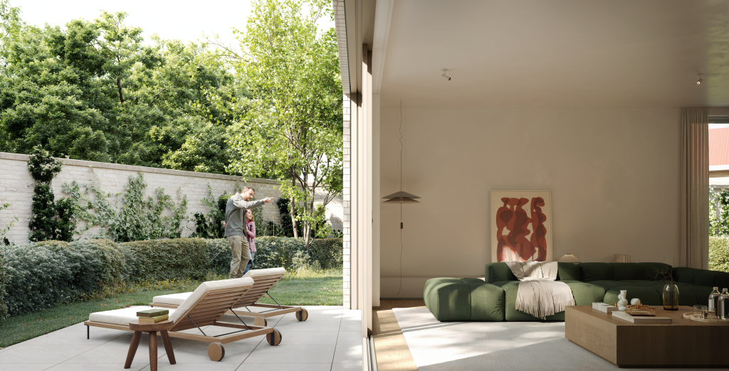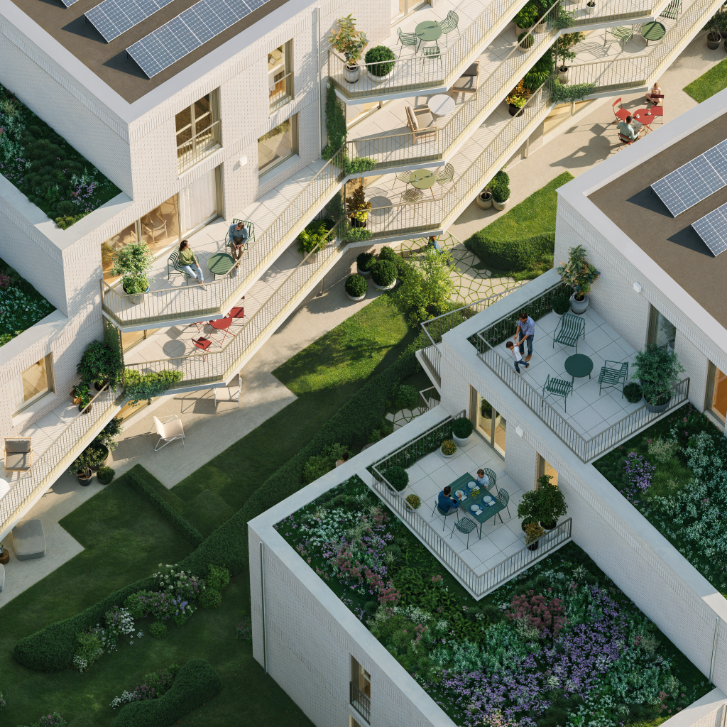 Les appartements de grande surface (jusqu'à 165 m²) et la résidence allient une architecture intemporelle à un confort de vie contemporain. La conception est l'œuvre de l'Atelier Carbon Architects, dont le style sobre mais chaleureux répond parfaitement à l'environnement et au confort de vie des résidents. De grandes baies vitrées apportent une grande luminosité et chaque appartement dispose d'une terrasse spacieuse ou d'un jardin privatif. A pompe à chaleur géothermique avec refroidissement passifComplété par des panneaux solaires, il garantit une vie économe en énergie et de faibles coûts énergétiques.