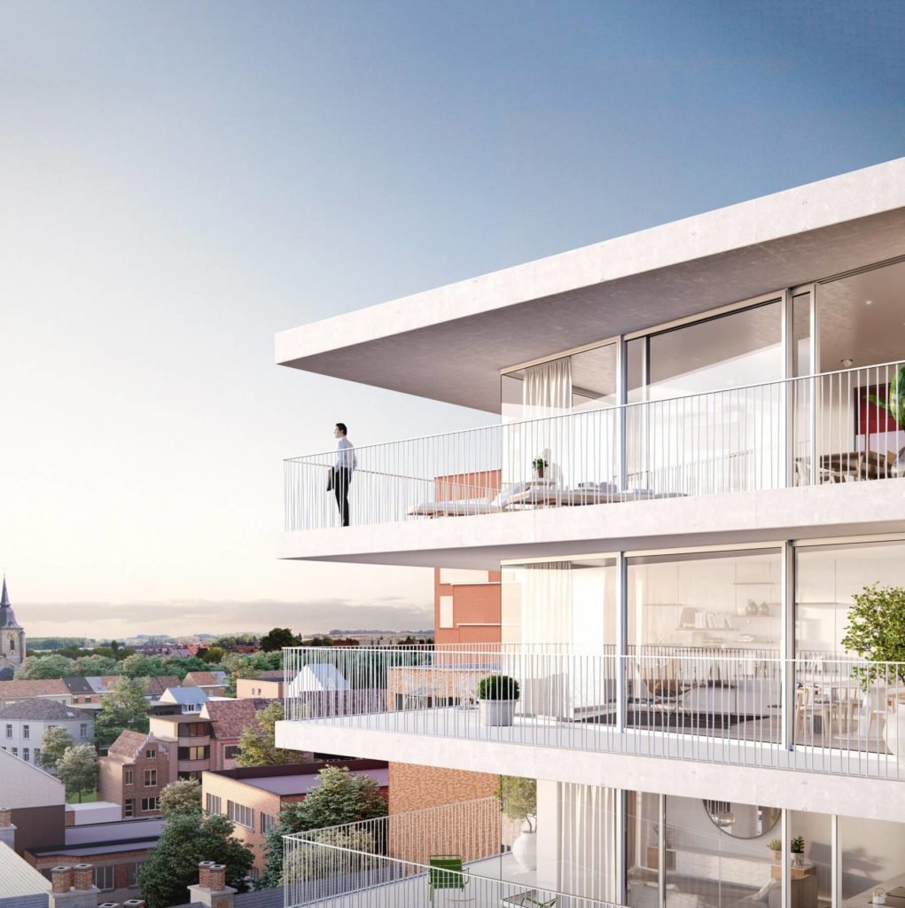 Een publiek toegankelijk balkon op verdiep zorgt voor een nieuwe relatie met de gemeente Merchtem.